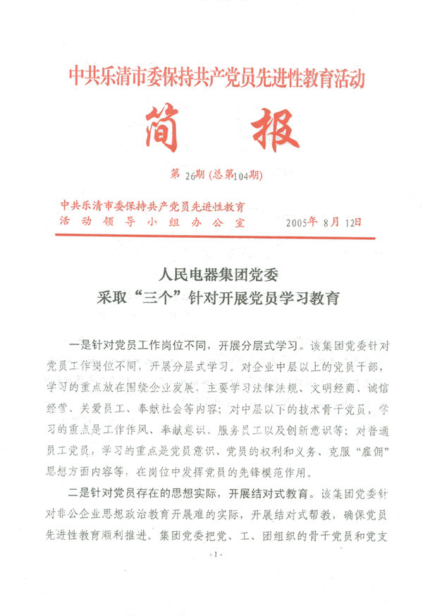 中共樂清市委保持共產(chǎn)黨員先進(jìn)性教育活動(dòng)簡報(bào)